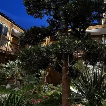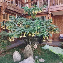 La cour est très unique, avec un arbre mandala en pleine floraison.