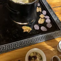 Hehehe, cette critique est toujours la mienne ! Je suis resté avec mes grands-parents, alors j'ai réservé deux chambres ~ J'ai bu du thé au lait super délicieux dans la vieille ville de Shuhe hahahahaha ! C'est le restaurant de la photo 1. Le thé au lait de rose à base de lait frais du Dali Ranch est super délicieux ! Et le gars de la réception est très bavard, attentionné et très agile avec ses mains et ses pieds ! Le petit frère a dit que Dali Ranch est l'un des quatre principaux ranchs du Yunnan, et c'est aussi le seul ranch qui produit et vend lui-même sans sous-traiter et qui a un contrôle de qualité strict. C'est vraiment génial ! À tel point que lors des prochaines attractions que j'ai visitées, j'ai spécifiquement cherché le yaourt au lait frais de Dali Ranch à boire hahahahaha ! La photo 4 est le yaourt de terre Dali acheté dans la zone panoramique du parc Xishuangbanna Manting. Le goût est très léger et pur ! Les photos 2 et 3 sont le barbecue hot pot aux champignons "à l'intérieur et à l'extérieur de la marmite" recommandé par la propriétaire de l'auberge. C'est une spécialité Naxi. C'est assez délicieux, mais un peu gras. La gelée de poulet et de haricots sur la photo 3 a été faite. après que le patron nous ait entendu dire le nom de la patronne, c'est offert, c'est aussi une spécialité Naxi, et c'est délicieux ! J'ai également commandé les tortillas de maïs recommandées par le serveur. Elles étaient délicieuses et je n'ai pris aucune photo.