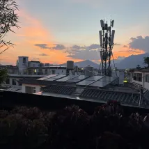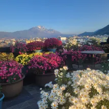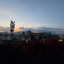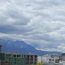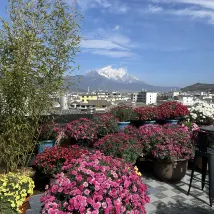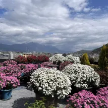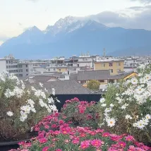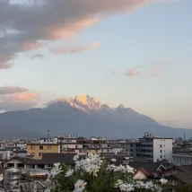 On peut admirer le lever du soleil sur le mont Jinshan. J'ai pris cette photo sur le toit-terrasse du B&B. Il a fait beau récemment et les fleurs sur la terrasse sont magnifiques et photogéniques. Nous sommes une famille et n'avons pas prévu d'aller au Mont Enneigé du Dragon de Jade. Le B&B est correct, récemment rénové et sans odeur. Il est à seulement 10 minutes à pied de la vieille ville et offre de nombreux restaurants à proximité.