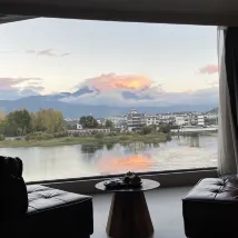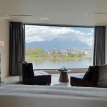 A designer hotel with superb view of the snow mountain and lake of qingxi garden. 20min drive to bai sha old city. Hotel provides drinks & snacks the whole day, including breakfast to supper, making up the lack of amentities around the area.