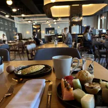 Le petit déjeuner est varié, de bonne qualité et créatif, et le prix est raisonnable à 15 euros/personne.
