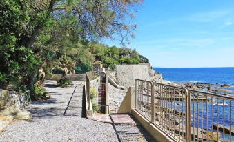 Villa "Tamerici", de 3 étages. Dans la localité, à 1 km du centre de Quecianella, à 6.5 km du centre de Castiglioncello, à 15 km du centre de Livorno, sur un versant, quartier résidentiel, à 15 m de la mer, accès direct à la plage. A usage privé: terrain 700 m2 (clôturé), jardin sur plusieurs niveaux entretenu, plantes et arbres. Terrasse, meubles de jardin, barbecue, place de parking (pour 3 voitures) sur le terrain. Magasins 1 km, supermarché 1.2 km, gare ferroviaire "Quercianella" 500 m, plage de sable 1.3 km, plage de rochers 15 m. Attractions à proximité: Livorno 14 km, Pisa 35 km, Firenze 100 km. Veuillez noter: voie ferrée à proximité 50 m de la maison.