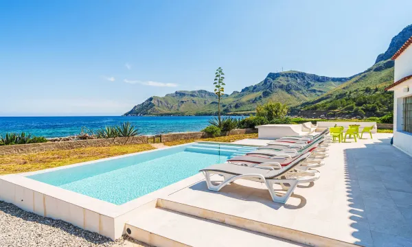 Betlem 5 km from Colonia de Sant Pere: Cosy, comfortable house "Xoroi". In the resort Betlem, in a sunny position residential area (villas), 10 m from the sea, 10 m from the beach. Private: large terraced garden, lawn for sunbathing, swimming pool angular (8 x 4 m, depth 160 - 160 cm, seasonal availability: 01.Mar. - 31.Oct.). Shower/WC in the pool area, outdoor shower, patio, arbour, pergola, garden furniture, barbecue. In the house: internet access, WiFi, central heating system, burglar alarm system, washing machine. Parking at the house on the premises. Shop 400 m, grocery 6 km, supermarket 800 m, restaurant 250 m, bar 800 m, café 400 m, internet café 800 m, pub garden 400 m, bus stop 800 m, pebble beach "Na Clara" 650 m, shingle beach "Ca los Camps" 3 km, rocky beach "Betlem" 10 m. Please note: car recommended. Baby equipment on request (included). Object suitable for 8 adults groups of teenagers on request only. Loading and unloading of baggage is possible at the holiday house. Airfield 73 km from the property. "Xoroi", 7-room house 200 m2. Object suitable for 8 adults. Comfortable and cosy furnishings: small entrance hall with gas heating. Exit to the patio. Open large living/dining room with satellite TV and gas heating. Exit to the patio. 1 double bedroom with 2 beds (90 cm, length 190 cm), gas heating and fan. 1 double bedroom with 1 double bed (150 cm, length 190 cm), gas heating and fan. 1 double bedroom with 1 bed (160 cm, length 190 cm), gas heating and fan. 1 large double bedroom with 1 french bed (150 cm, length 190 cm), bath/bidet/WC, gas heating and fan. Large kitchen-/living room (4 hot plates, oven, dishwasher, toaster, kettle, microwave, freezer, electric coffee machine) with dining table. Exit to the patio. Bath/bidet/WC, double hand-basin. Upper floor: large lounge with paraffin heater. Exit to the terrace. Large patio. Terrace furniture, barbecue, deck chairs (4), covered balcony, sitting area. Very beautiful panoramic view of the sea, the mountains, the countryside and the bay. Facilities: washing machine, iron, children's high chair, baby cot for up to 2 year olds, hair dryer. Internet (WiFi, free). Suitable for families. ETV6651 ESFCTU00000702300098257500000000000000000000ETV/66518