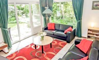 Lochem à 37 km de Apeldoorn: Lotissement de vacances simple "Bosrijk Ruighenrode", environné par les arbres. En-dehors de la localité, à 3 km du centre de Lochem, situation tranquille, juste au bord de la forêt, dans la verdure. En commun: tennis (3 x dur). Infrastructures de la résidence: réception, restaurant, Connexion WIFI. Places de parking centrales. Magasins 3 km, supermarché 3 km, restaurant 200 m, bar 2 km, boulangerie 2.9 km, café 2 km, arrêt de bus "Dwarsweg" 500 m, gare ferroviaire "Lochem" 5.2 km, piscine couverte 500 m. Terrain de golf (18 trous) 2 km, tennis 9.5 km, tennis couvert 9.5 km, centre équestre 6.7 km, chemins de randonnées pédestres depuis la maison 100 m. Attractions à proximité: Kasteel Verwolde 10 km, Sluiscomplex Eefde 13 km, Belevingspark Cactusoase 14 km, Familiepretpark Megapret 25 km, Internationaal Brandweermuseum 26 km, Arnhem 50 km. Région de randonnées: Natuurpark de Veluwe 25 km, Recreatiegebied Bussloo 27 km, Nationaal Park Sallandse Heuvelrug 30 km. Veuillez noter: voiture recommandée. La photo ne montre qu’un exemple de location de vacances. D’autres appartements sont également proposés à la location dans cette maison de vacances. Supplément de nettoyage obligatoire de 10€ à régler sur place pour les animaux. Les groupes de salariés sont acceptés sur demande uniquement. Supplément de 15€ à régler sur place pour toute préférence de réservation.