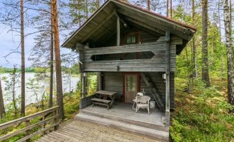 The nearest neighbor 130 m away is the second cottage of the owner's family (there is a visual contact with the neighbor's lakeside sauna only outside summer). 200 m away lies the owner's second Lomarengas rental villa 13088 Metsä-Iivari.