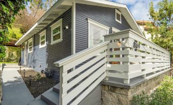Enjoy breathtaking views at this pet-friendly, LA hideaway. This historic 1923 renovated craftsman home is nestled into the hillside surrounded by beautiful landscape w/Mountain Views! Cook Sunday morning breakfast in the fully stocked kitchen. Enjoy high-speed internet for your workdays at home as well as a smart TV for the nights when a little R+R is needed. This serene retreat boasts a large grass-covered backyard, a deck with a table-top firepit for those cooler LA nights, and multiple other outdoor patios to relax.