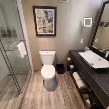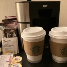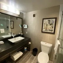L'avion a décollé à 8 heures et j'ai pu m'allonger à l'hôtel à 9 heures pour prendre un bon bain et me reposer. Il y a des serviettes, du gel douche, du shampoing et de l'après-shampooing dans la chambre, ainsi que de l'eau en bouteille et du café gratuit (les hôtels aux États-Unis n'ont pratiquement pas d'eau et c'est très cher). Le lendemain, vous pouvez marcher jusqu'à la société de location de voitures et repartir.