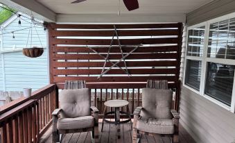 Thoroughly enjoyed our stay at The Caldwell. House had everything we needed and then some!!! Back porch was very relaxing and enjoyed watching the birds and squirrels. Neighborhood was cute and felt safe. We were able to walk to a restaurant at the end of the block and also close to many other things. Definitely recommend this place!!!