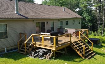Monthly discounts available Great family house located on 16 private acres but only 2 miles from town. Night star gazing at it`s best. Two person Kayak and two inflatable paddle boards are in the garage for your use. Hot tub is right out the backdoor. Huge game room pool table, air hockey ,darts ,foosball , large bar 55 inch tv with third sitting area plenty of room to spread out see reviews it's so awesome its hard to put into words. . Fully stocked kitchen. BBQ out on the back deck. Sledding right in the backyard sleds in the garage for use. We do everything we can to make your stay great.About pets:No pets allowed.About checkOut:Check out before 11:00 AM.About children:Children allowed: ages 0-17.About customRules:Traveler must send photo identification upon booking.Traveler must explain reason for stay and description of group.About checkIn:Check in after 4:00 PM.About smoking:Smoking is not permitted.About minBookingAge:Minimum age to rent: 21.About events:No events allowed.