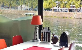 Juste génial comme concept. Première fois qu'en regardant par ma fenêtre je vois un poisson nager ! La péniche est très bien située, à deux pas de Perrache, une bulle d'originalité dans la banalité d'un déplacement professionnel.