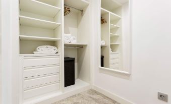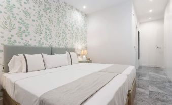 Upon entering, you are greeted by a spacious hallway leading to the main bedroom on the left. This bedroom is equipped with a 160 cm bed, an en-suite bathroom, and a private walk-in closet, while its windows offer tranquility with views of an interior courtyard. Continuing down the hall, we find the second bedroom, also with an en-suite bathroom, ideal for accommodating two people with its two 90 cm beds.