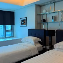 We had a great experience during our stay. The room was very spacious and comforting, which made it easy to relax. The hotel itself wasn’t crowded, so it felt peaceful throughout our visit. One of the highlights was the pool – very clean and well-maintained. The location is also very convenient, close to everything we needed. The only downside was that the TV in the room wasn’t a smart TV. It would be great if the hotel considers upgrading this in the future to enhance the in-room entertainment experience. Overall, a comfortable and enjoyable stay – would definitely return!