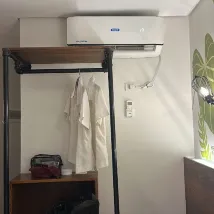 Chambre propre. Confortable. Climatisation fonctionnelle. Eau chaude. Équipements complets. Chaussons d'intérieur adorables :)