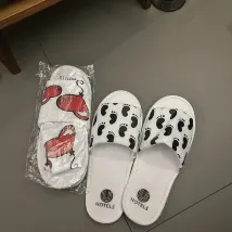 Sur la table de travail, des bouteilles d'eau, du café, du sucre et des sachets de crème avec des bâtonnets mélangeurs jetables sont installés. Les bouteilles d'eau sont remplies tous les jours. Nous sommes restés quatre jours et trois nuits, soit six bouteilles au total. Concernant les produits de toilette, ils n'en fournissent qu'un seul dès le premier jour de séjour. Leurs pantoufles étaient d'ailleurs très mignonnes.