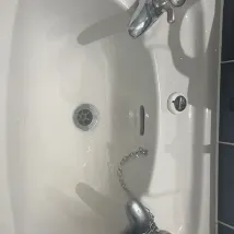 Separate hot and cold water taps. Toiletries only 1 tiny soap.