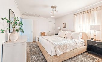 With a grand total of 6 bedrooms (9 beds, and one sleeper sofa) this home very comfortably accommodates 19 guests. The in law quarters of the home have been redone and are included with this listing so you have full run of the property and ultimate privacy. It's perfect for groups traveling together who still prefer to have individual spaces. In addition to 6 beautiful bedrooms, there are two fully stocked kitchens and dining rooms- continue reading for a more detailed breakdown.