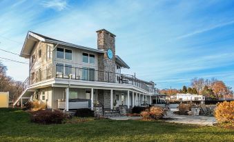 On the main floor you will find the fully stocked kitchen (and since we know coffee is important, we've added a Breville Espresso machine and a Keurig/drip coffeemaker combo so no matter how you take your coffee we have you covered). There's also a dining table (seats 10) with views of the water, a living room with a Smart TV and floor to ceiling windows with views of the water on two sides. Through the sliding doors is the wrap around porch with a Blackstone grill so you can cook up breakfast while drinking your morning coffee along the water.