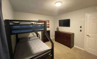 A large master bed with connecting master bath and closet. One bedroom queen size bed, closet and workstation, with flat screen. Next bedroom has a bunkbed with a full on the bottom and twin on the top, with closet and flatscreen TV. Large kitchen and Dining space, with Pool (additional fee to run heater), outdoor furniture, and outdoor dining tableAbout pets:Pets allowed: dogs less than 20 lbs per pet (limit one pet total).About checkOut:Check out before 10:00 AM.About children:Children allowed: ages 0-17.About checkIn:Check in after 4:00 PM.About smoking:Smoking is not permitted.About minBookingAge:Minimum age to rent: 25.About events:No events allowed.