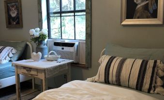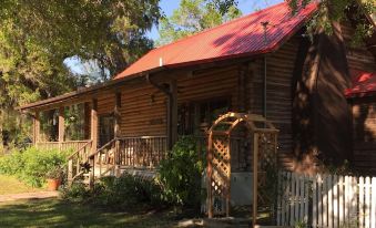 Cozy log cabin in the middle of 3 acres fire pit and tress full of Spanish moss. Enjoy cool nights on the porch, or snuggled in front of the wood burning fireplace. Three bedrooms decorated with rare finds from antique stores, updated bathroom with built-in bench and double showers, a kitchen with a 5 burner gas stove, central heat and AC, washer and dryer, smart TV's, cable , and internet. Go horseback riding on a near farm, swim in endless natural springs or explore the best antique stores in nearby Micanopy, Macintosh or Ocala. 7 minutes away from the exclusive Jockey Club, and 12 minutes away from 24/7 market, food and gas. Bring your pets!!!!About pets:Pets allowed: limit 10 total.About checkOut:Check out before 10:00 AM.About children:Children allowed: ages 0-17.About customRules:Ongoing property mgmt. includes on site storage, vehicles, occupied RV motor home. Off site RV relo. available for added fee, subject to availability..About checkIn:Check in after 4:00 PM.About smoking:Smoking allowed: in designated areas.No smoking in outdoor buildings including sheds.About minBookingAge:Minimum age to rent: 21.About events:Events allowed: family gatherings, birthday parties, weddings.Maximum event attendees: 50,No explicit content/foul language @ recorded event.