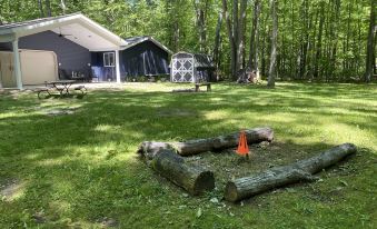 Our cozy cottage is nestled in a lush, green forest setting, and is one mile from the sixth most beautiful lake in the world, Higgins Lake and just a few miles north of the largest inland lake in Michigan, Houghton Lake. We have local trails to explore for snowmobiles, quads, dirt bikes, ATV's and side by sides just around the corner. Only 4 miles from the 6/7 trail head at the US-127 exit 201 that you can ride to from the driveway. We have a front deck with a gas grill and furniture out back to help you relax and soak up the summer sun! There's a large outdoor table with chairs as well as a picnic table. We have a large double lot with wooded lots on both sides (no close neighbors!) that provide a peaceful private up north setting along with a stone bonfire pit out back for roasting s'mores under the stars. For those rainy days enjoy a game of cards under the cathedral ceiling covered porch out back with a ceiling fan and dimmable LED lights!