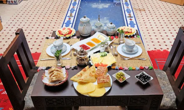 Riad zanouba vous invite à découvrir son restaurant. Un petit déjeuner continental gratuit est servi tous les jours de 08 h 00 à 10 h 30.