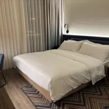 Great location close to the airport (about a 15–20 minute walk, or accessible by bus 22 or taxi). The bed was very comfortable. There is a decent fitness room.