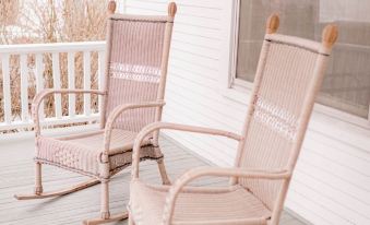 The 1905 House has four bedrooms (2 - King, 2 - Queen) and two bathrooms, one the second floor (with a tub) and one on the main floor. On the main floor you’ll also find a spacious living room with a 55” TV, dining room that seats 8 and a cozy office. Off of the fully equipped kitchen you’ll have access to a washer and dryer. During the summer and fall months (and spring if you’re lucky) relax in one of our rockers on the front porch.