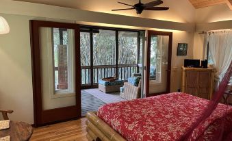 We loved it here. I'm a gardener & therefore adored looking at all the plants. We spent most of our time reading together on the screened-in lanai. I made every excuse to take multiple showers in the outdoor-one: it felt very Brooke-Shields-in-the-Blue-Lagoon (if they'd had a shower--but you know what I mean). Beautiful, evocative touches throughout. The mosquito netting over the bed was somewhat difficult to negotiate, but no biggie.