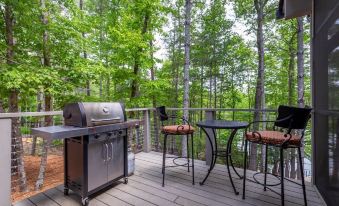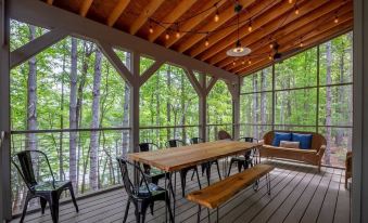 • Screened porch: Seating for 10, this space allows you to enjoy nature’s sights and sounds. Two ceiling fans keep it cool and Edison lights add nice ambiance. Enjoy your morning coffee and breakfast or a fun meal with friends / family. Next to the screened porch is a grilling deck with gas grill.