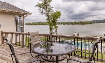 Enjoy the 180 degree view of the Hiwassee River, dock, & plenty of parking in the driveway, plus the separate drive for RV & boat storage! Inside, open kitchen with the most massive farmhouse dining table you've seen! From here, looking into the sunroom with wrap around windows taking in the fabulous lake views & crisp fall air from the decks! Downstairs, is a den with full bath/laundry room. Out back, is a concrete patio across the entire back, deck with hot tub, outdoor shower, & fenced pool