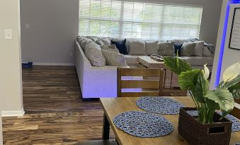 We enjoyed our stay. Just me and my husband and our 2 yorkies. Backyard was enjoyable. House was clean and very comfortable. Location was convenient and the neighborhood was very quiet. We would rent again. Loved the couch and beams in the kitchen/family room. The house was very nicely decorated.