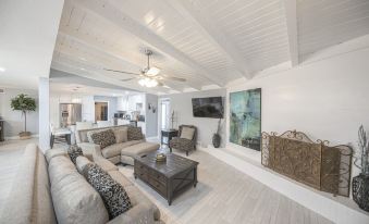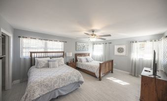 beautifully updated open floor plan with privacy for all four bedrooms, spacious enough to hold two queen beds in each as well as sitting areas. Two of the bathrooms are on suites and one is for the other two bedrooms fully equipped kitchen open floor plan multiple sitting areas whether you come to visit for work or play, this house can accommodate large groups.About pets:Pets allowed: less than 20 lbs per pet (limit 2 pets total).About checkOut:Check out before 11:00 AM.About children:Children allowed: ages 0-17.About customRules:For Extend Stays over 10 days