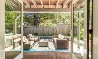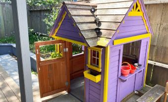 Walk to downtown shops and local attractions. The home offers family-friendly amenities, including backyard with a fire pit, playhouse, and outdoor seating.