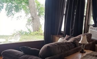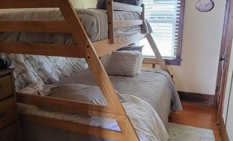 A nice, clean cabin, with classic decorating touches. The double, large windows onto the lake have a great view. Great hosts. A single, small bathroom was our only drawback.