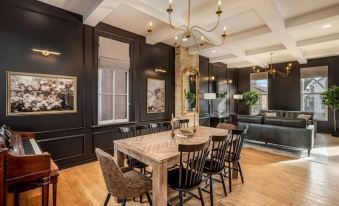 Large dining room, dinner table with unique room décor. Comfortably seats 8