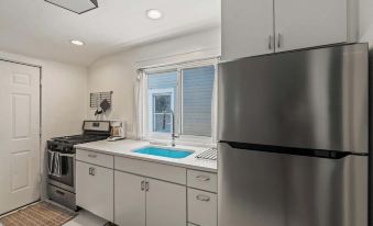 Inside this whole home(duplex with both the upper & lower unit combined), you'll find a blend of modern style and comfort, featuring an updated kitchen and bathroom complete with stainless steel appliances, sleek quartz countertops, a luxurious rainfall showerhead. Relax in comfort with two comfy queen beds, thoughtfully designed for a restful night’s sleep, and enjoy the added convenience of the additional queen sofa bed, perfect for accommodating larger groups.
