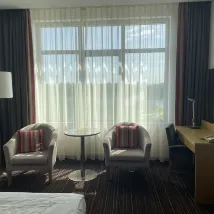 Очень красивый отель, вид на Парк Победы, просторные номера с набором чая, чайника, бесплатной воды, новый, со своим спа центром с сертификатом бесплатного посещения. Были бы на ресепшене и баре чуть проворнее, было бы просто идеально!