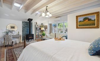 Nestled in the Ojai Valley's Meiners Oaks, affectionately named "Mo Town", this delightful studio is a wonderful retreat for guests. With its charming decor and natural light, this cozy space offers a comfortable country retreat. The sleeping space features a high quality queen bed with high quality linens, ensuring a restful night's sleep. The bathroom is equipped with a refreshing shower, hair dryer, fresh towels and toiletries for your convenience. Stay connected with WiFi and Direct TV. Includes a minisplit for dedicated heating and AC, that guests control. Kitchenette is equipped with mini fridge, freezer, microwave, induction plate, tea kettle and coffee maker-sorry no stove. Although this studio is connected to the main house privacy is guaranteed. Includes private off street gated parking and EV charging is available on request. Casa Esquina is just a short 7 minute drive to downtown Ojai and sits with convenient access to both highway 150 and the 33.