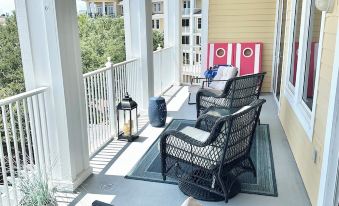 The vibrant colors of the sea are reflected in the relaxing décor of our beautifully furnished fourth level vacation home. There is a comfortable family room with plenty of cushy seating and a flat screen television for the family. Step out onto our balcony and enjoy an awesome direct view of the Baytowne Wharf excitement!