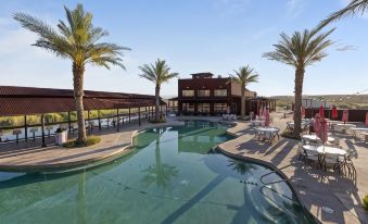 Topock 66 has been a family spot for us for years now and with the new hotel, we had to try a river weekend there. The hotel was great - fresh, new, clean, spacious - the kitchenette is a win-win fir us to make meals for our river boat days. After, we come back, we enjoy the pool and some cocktails! 3 drawbacks...1. Trains run all day and through the night 2. Music ends too early at the pool. 3. "pool bar" closes too early. When we come off the water, we just miss the entertainment AND jumping in the pool with drinks at the water bar! Food at 66 is ok and free water is a + with such extreme summer temps.