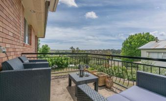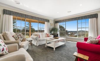 As a party of 5, we found the home to be clean, spacious and well equipped. There are various living spaces so you can spread out and not feel like you're living on top of each other, or gather together in front of the fire or on the sunny deck. There were a few little maintenance issues but nothing that impacted too much on our stay. Easy walk into town but the short, steep hill coming back gets the heart rate up. The gardens are simply beautiful and the view over the town and beyond is stunning. All the essentials are provided to make your stay comfortable, and a few extras like fresh honey, peanut butter and eggs from the host's farm. Definitely recommended as a great spot to explore the local area.