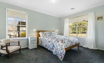 This comfortable home offers sensational views over Molong and the surrounding district. Beautiful North facing panorama. Great base from which to explore the district. 3 bedrooms upstairs (one with ensuite). Cot and or toddler bed available. Desk and workspace also available. Open Living space with comfortable seating. Modern Kitchen with all amenities. Large garden, Eastern facing verandah. Reverse cycle heating and cooling. Full access is available at the upper level from the carport at the rear of the house. We pride ourselves in presenting a beautiful home and know that guests will treat it with the love and respect it deserves. Guests have access to the whole garden. Guests will be given complete privacy. We will however be on hand to answer any queries or as needed. Andy loves to share his extensive knowledge of the area. One covered car park with access from the rear of the house (in Lee St).