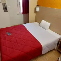 Accueil impeccable, chambre pas très propre par terre ( sortie de la douche marché dans la chambre pied nu pied devenu sale ) coton coincé dans la lampe à côté du lit, une lampe manque une ampoule, tâche plus foncée sur la couette rouge
