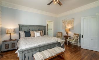 Bedroom 1: King bed, en-suite bath, sitting area, walk-in closet & shower
