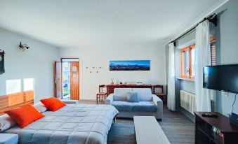 On your arrival you will find a 'rustic' veranda where you can relax, gazing at a glimpse of the Sibillini mountains during the day and a sky full of stars in the evening, with a sofa (bed) and armchairs oriented to enjoy the view.
