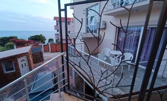Appartement familial et confortable dans un complexe à 200 m de la mer. Equipé de tout ce dont vous avez besoin pour un séjour confortable : cuisinière, réfrigérateur, micro-ondes, bouilloire, télévision, trois climatiseurs, lave-linge, planche à repasser. Parking sur place. Vue sur la mer.