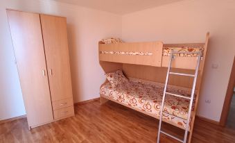 Un séjour avec cuisine et coin repas, 2 chambres, une salle de bain et une terrasse sont à la disposition des hôtes séjournant dans l'appartement. Pour les loisirs, il y a une grande pièce avec vitrage panoramique, tables et bancs et une salle de bain au dernier étage du complexe, c'est un espace commun.