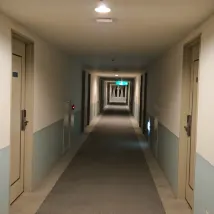 Le 6 février, jour de mon arrivée, la météo était rude : il y avait beaucoup de vent et il faisait froid, et j'ai dû marcher de l'arrêt de bus de Seto jusqu'à l'hôtel avec deux valises dans un froid glacial. Épuisé par mon vol et mon voyage jusqu'à Munakata, j'espérais une atmosphère plus accueillante. Au lieu de cela, après un bref passage dans un Lawson voisin pour me restaurer, je suis retourné à l'hôtel et j'ai attendu dans le hall, car il faisait trop froid pour explorer l'hôtel. À 14 h, la fatigue m'a envahi et je me suis allongé sur le canapé du hall pour me reposer. Malgré ma somnolence dans le froid du hall, aucun membre du personnel ne s'est approché de moi. Le chauffage de l'hôtel était faible et je me réveillais sans cesse à cause du froid mordant. À 14 h 30, j'ai entendu des clients s'enregistrer, ce qui m'a surpris : personne ne m'avait informé que je pouvais commencer à m'enregistrer plus tôt.