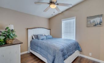 This home features a master bedroom with a California King Bed and 2 other bedrooms with Queen Beds – every room has been uniquely decorated and includes bedding. With all new furniture and appliances, you will enjoy a dining area that seats 4 and a kitchen that includes a large refrigerator, dishwasher, coffee maker, fully stocked utensils, and air fryer. The cabin has all the technology you’re looking for with free wifi, an Amazon Alexa, and Smart TV with Cable, Hulu, Netflix, and Prime Video. Don’t worry about packing a lot – you will also have the convenience of a washer / dryer in this beautiful home.