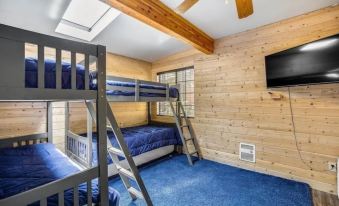 Caribou Cabin comes with- freshly cleaned linens, bedding, and towels for all guests. We also offer a coffee bar with various selection of flavors. Paper towels, toilet paper, trash bags, laundry detergent, dish and dishwasher soap, hand soap, shampoo, conditioner, and body wash. The kitchen will have various spices, and cooking oils. Cabin has shelves full of boardgames, game console, arcade and cornhole. Home includes a playpen and highchair.